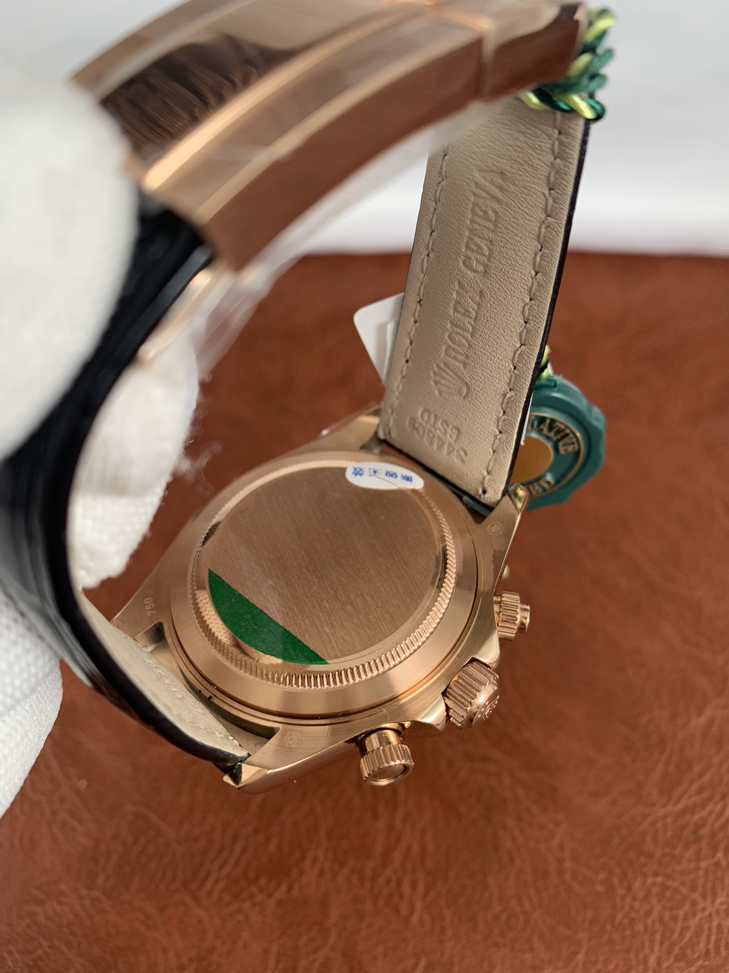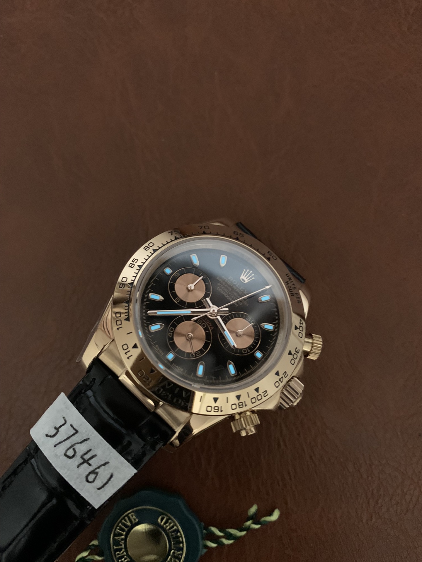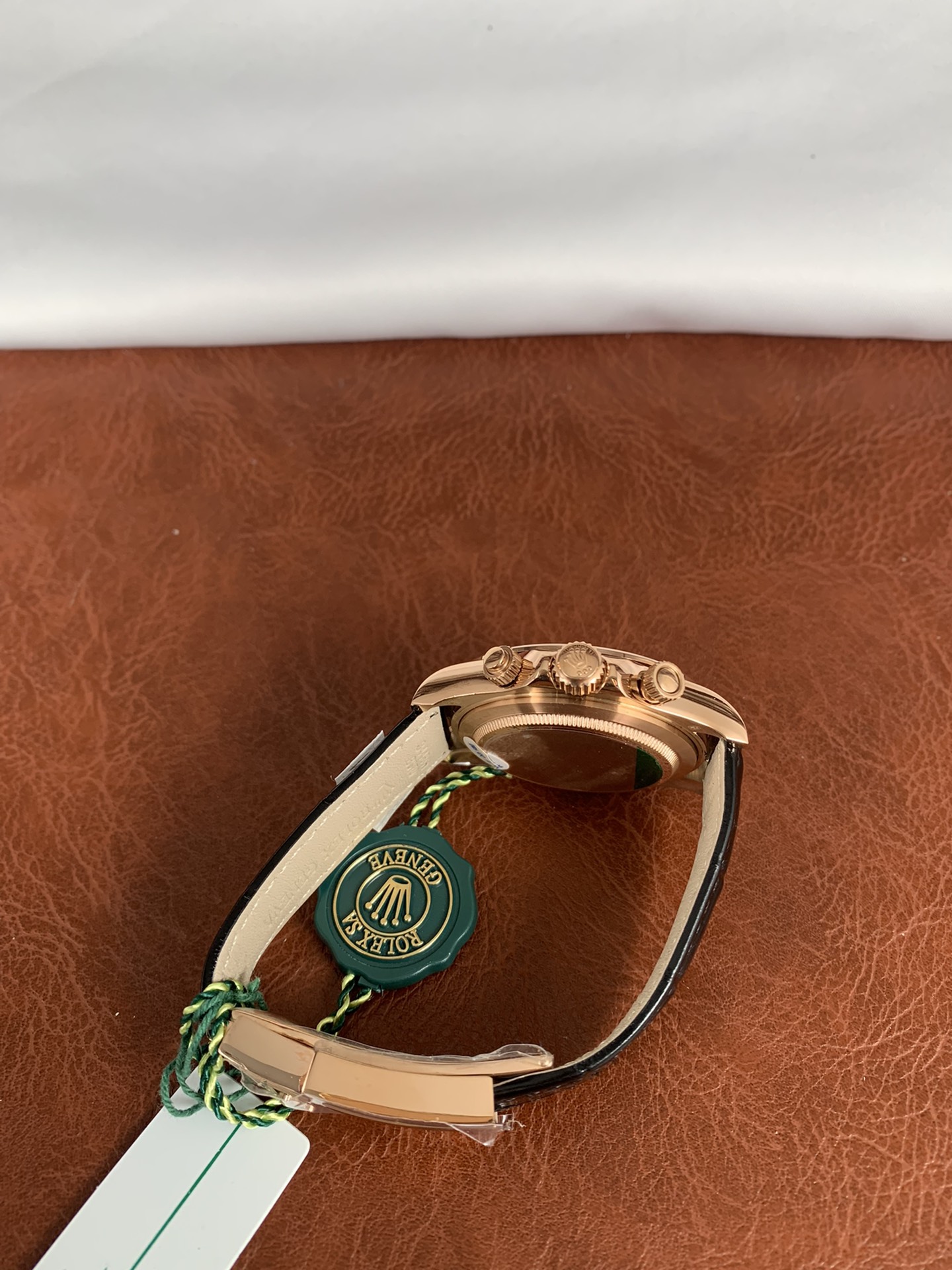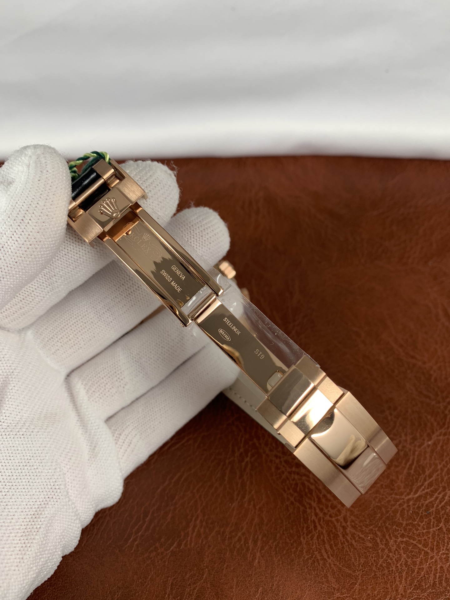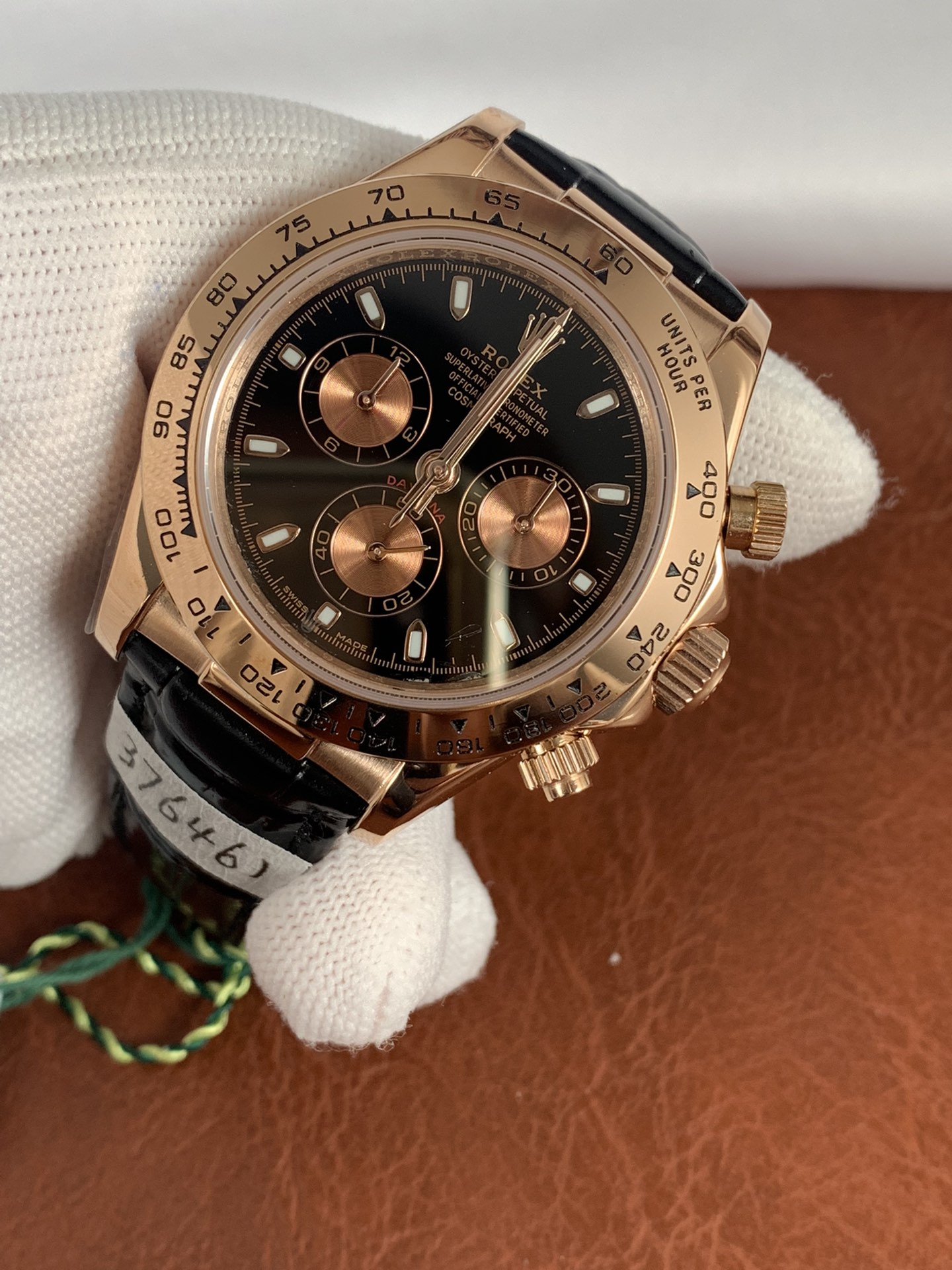 Acquista repliche esatte degli orologi Rolex della collezione Daytona. L’orologio sportivo da uomo Rolex Daytona 116515 è dotato di un affidabile movimento automatico con calibro a carica automatica “Valjoux-7750” (Svizzera), in cui sono implementate le seguenti funzioni: lancette delle ore, dei minuti e dei secondi, cronografo. Gli orologi con cassa rotonda in oro rosa con un diametro di 40 mm e uno spessore di 13 mm completeranno perfettamente l’immagine e adorneranno il polso del suo proprietario. Per la produzione degli orologi replica Daytona offerti nel nostro negozio online viene utilizzato acciaio inossidabile 904L di alta qualità (standard svizzero) e vetro zaffiro. Le casse degli orologi sono completate da una lunetta in ceramica. Una caratteristica distintiva di questo modello è un quadrante nero con indici. Un cinturino in caucciù nero con chiusura pieghevole completa il look. La resistenza all’acqua dichiarata dell’orologio è di 5 ATM.