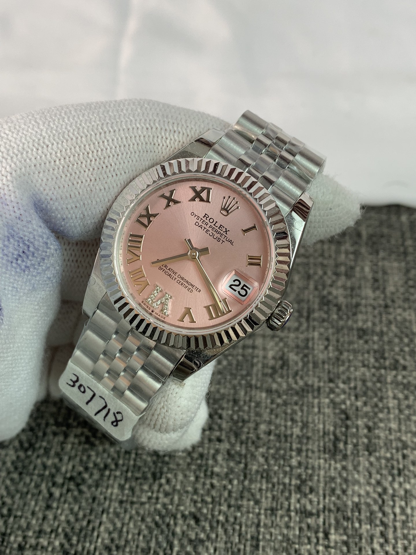 Acquista una copia esatta dell’orologio Rolex della collezione DateJust. Il classico orologio da donna Rolex DateJust 31mm 278274-0024 è dotato di un affidabile meccanismo a carica automatica calibro Cal.3235, che implementa le seguenti funzioni: lancette delle ore, dei minuti e dei secondi, nonché la data. La cassa rotonda, alta 31 mm e 12 mm, dell’orologio completerà e illuminerà perfettamente il polso di chi lo indossa. Per la produzione del Rolex DateJust 31mm 278274-0024 offerto nel nostro negozio online, viene utilizzato l’acciaio inossidabile 904L di alta qualità (standard svizzero) e il vetro zaffiro. Una caratteristica distintiva di questo modello è il quadrante rosa, i cui indici delle ore forniscono numeri romani. Il bracciale è rifinito in acciaio inossidabile con chiusura pieghevole Rolex. L’impermeabilità di questo modello è di 30 M (WR30): è consentita un’esposizione minima con l’acqua.